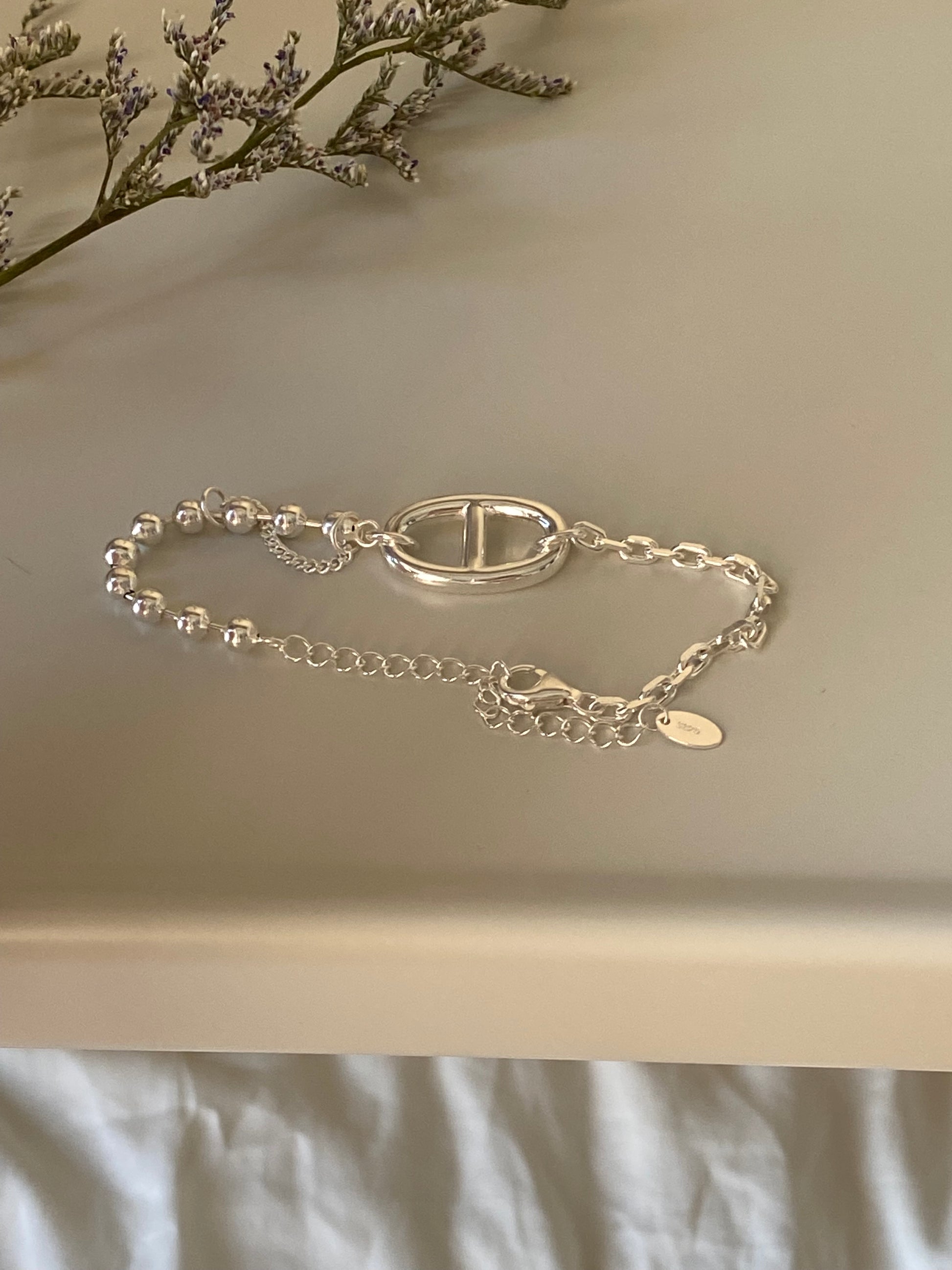 Sterling Silver Beaded Charm Oval Link Bracelet|925Street